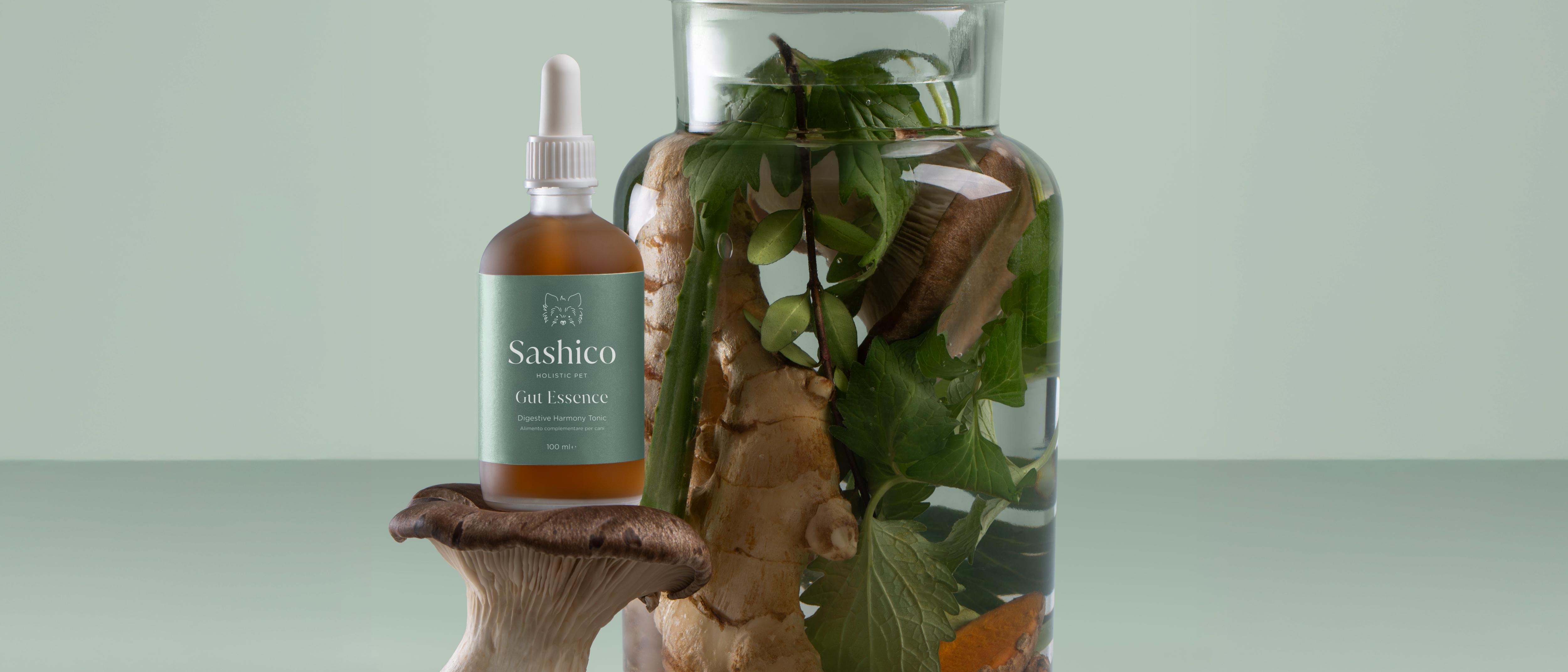 Sashico Gut Essence is a liquid supplement for dogs that supports gut health and overall well-being. Maceration is a slow extraction process where whole plants are soaked to release their active compounds gently. Distillation uses steam to capture the most delicate and potent plant essences. Together, these methods preserve the full spectrum of natural benefits without damaging the integrity of the botanicals.
